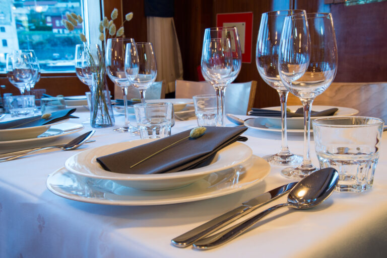 Nyt ein utsøkt trerettars middag medan fjorden gløttar inn gjennom panoramavindauga. Restauranten er også ei flott ramme for private selskap. Skipet har plass til mange gjester, og personalet skreddarsyr meny og rammer etter ditt behov.