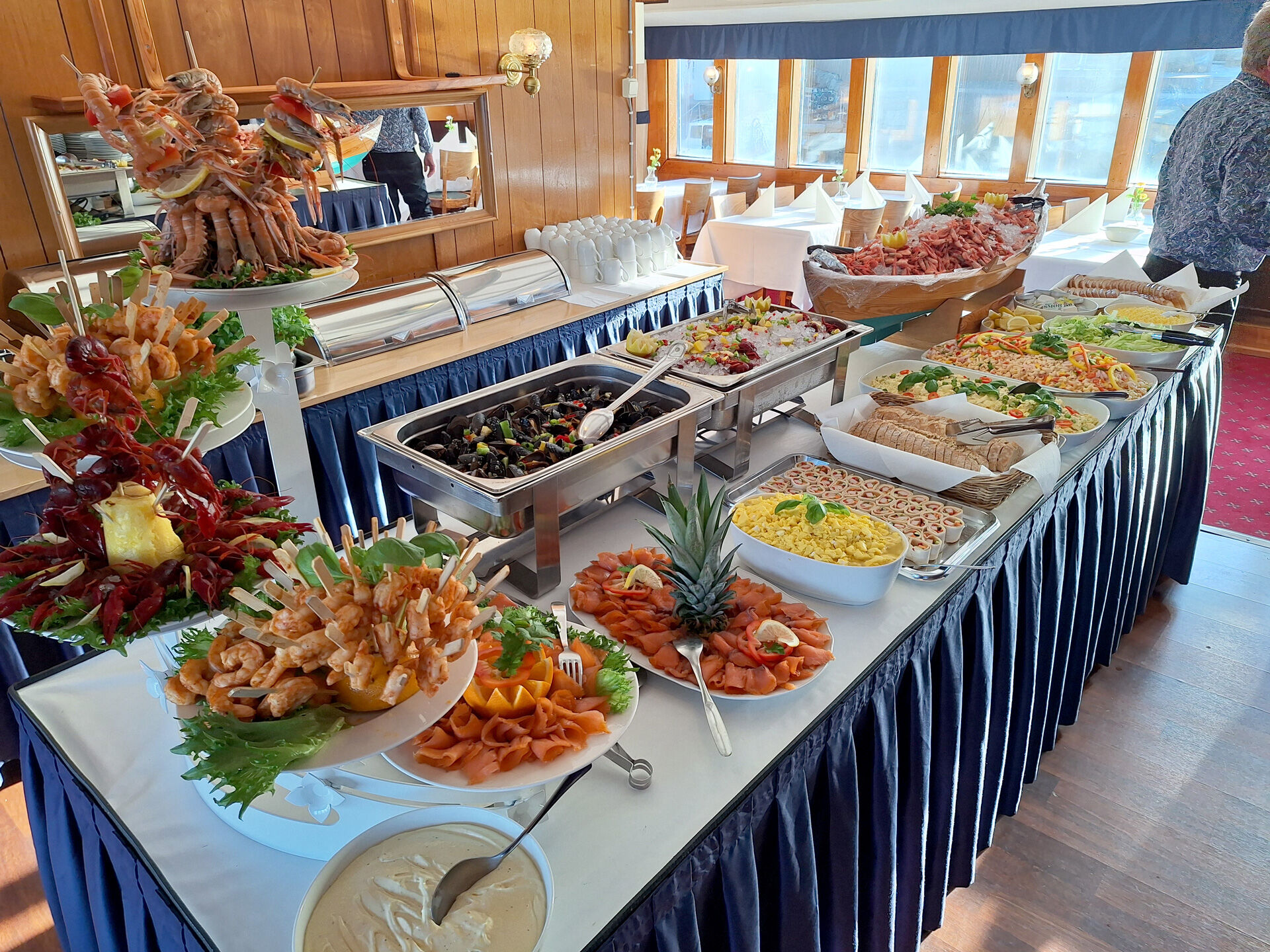 Bufféen på MS Sunnhordland byr på eit variert og smakfullt utval, tilberedt med fokus på gode råvarer og tradisjonelle smakar. Her kan du nyte eit avslappa måltid i maritime omgjevnader – perfekt for både gjester som overnattar og besøkande til kai. Bufféen passar godt for både små og store selskap.