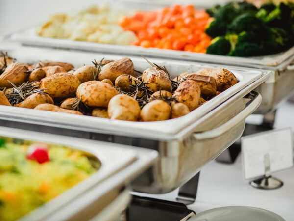 Stort utval av kalde og varme rettar, samt dessertbord og kaffi.